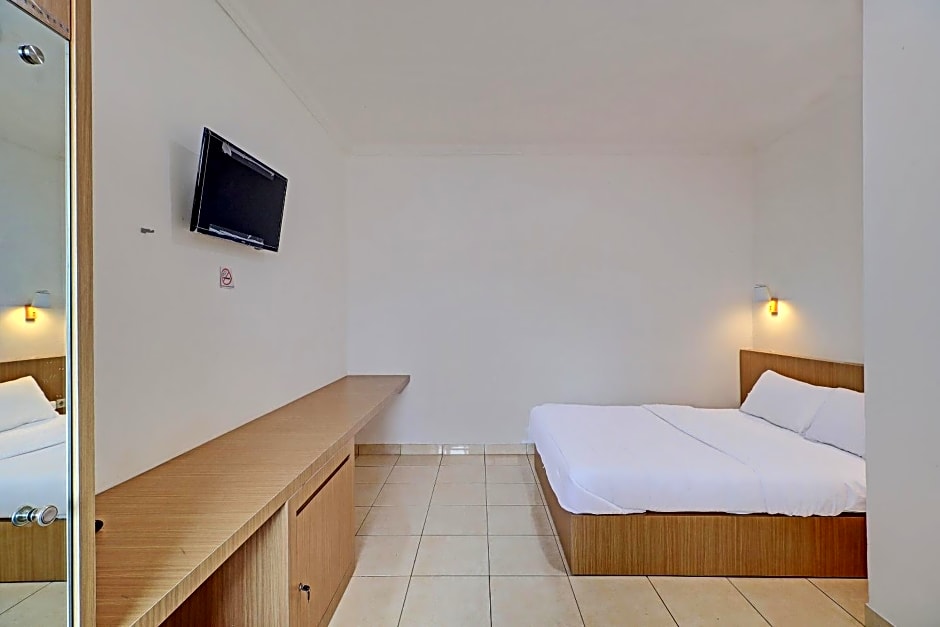 DOUBLE CITY VIEW ROOM is 172 square feet and includes a queen-size bed 150-154 width plus desk and cable tv.